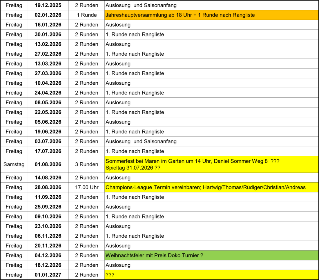 Spieltermine für die Saison 2026 des 1. DV Cosmos Stade