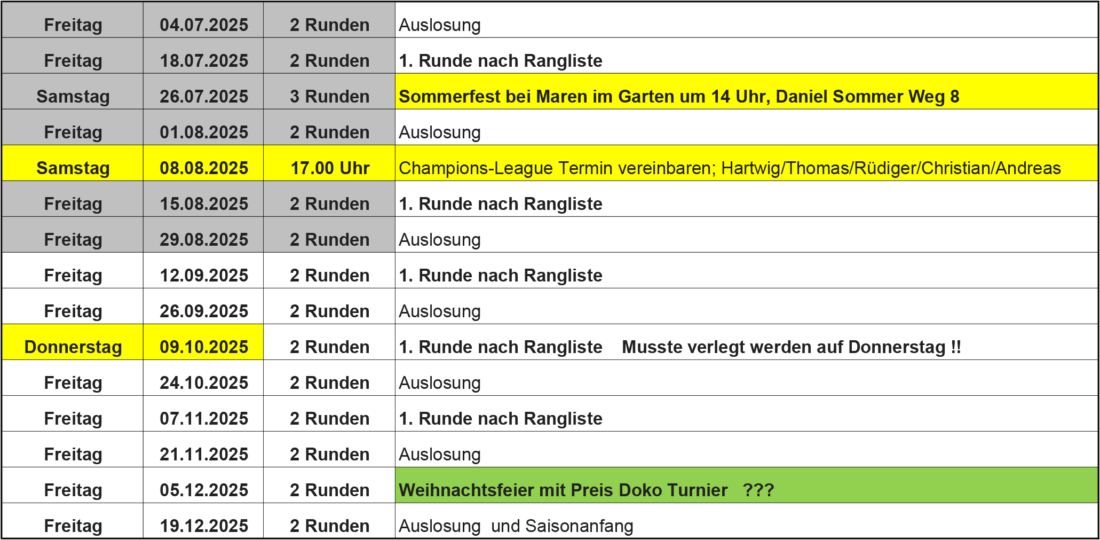 Spieltermine - 1. Doppelkopf Verein Cosmos Stade